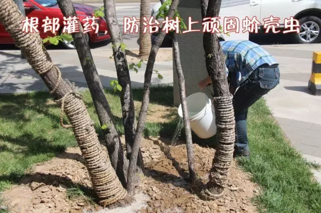 2、 根部灌藥殺蟲(chóng):使用“雷琒樹(shù)蟲(chóng)清”進(jìn)行根部灌藥殺蟲(chóng),持效期長(zhǎng)達(dá)半年以上,不管是成蟲(chóng)期或若蟲(chóng)期均能收到良好殺蟲(chóng)效果,長(zhǎng)時(shí)間控制無(wú)蟲(chóng)害發(fā)生,并且能促壯樹(shù)勢(shì)。